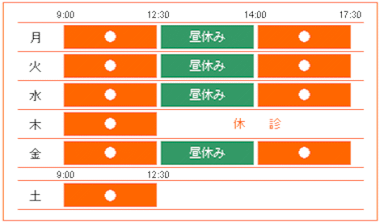 | (午前、午後とも最終受付は診察終了15分前まで) |